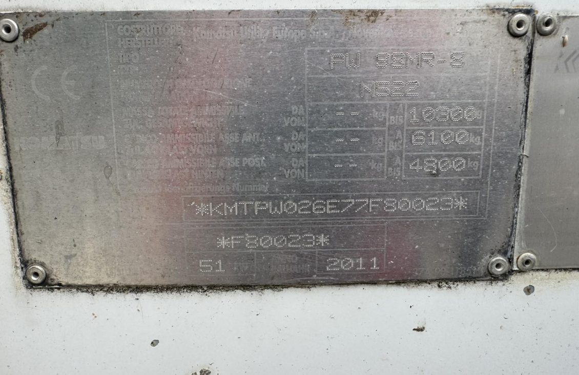 Kolový bagr Komatsu PW98MR-8, r.v. 2011, hmotnost 10300kg, výkon motoru 51kW. Příslušenství rychloupínač mechanický MS08. Cena 990 000 Kč.